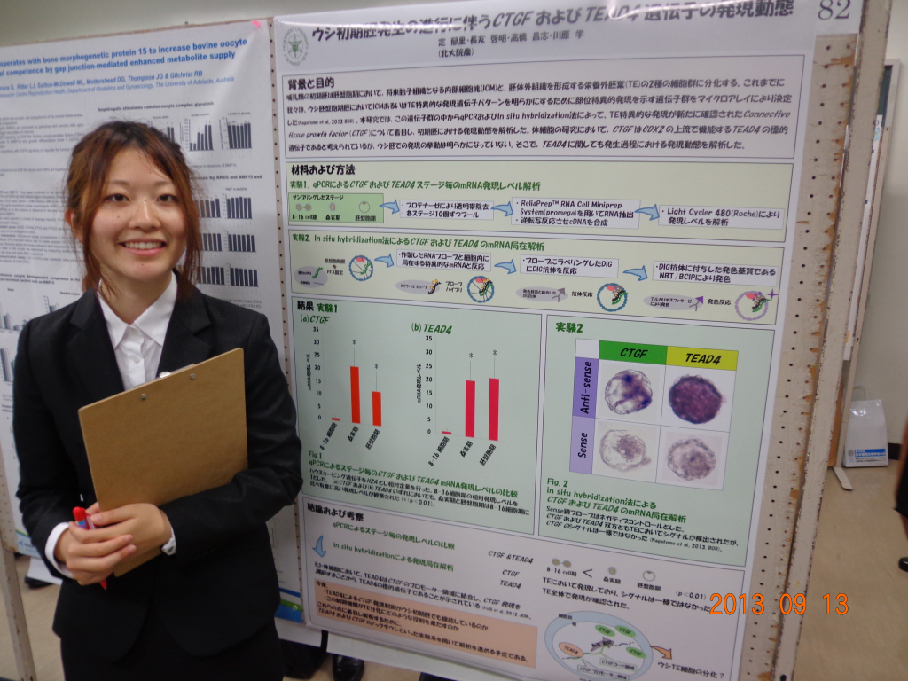 9月12日から14日にかけて、東京の東京農工大で日本繁殖生物学会が開催され、当研究室からは佐々木、山崎、定が参加しました。